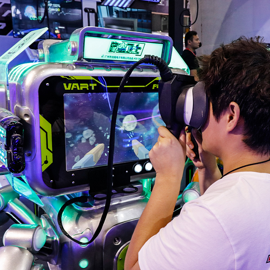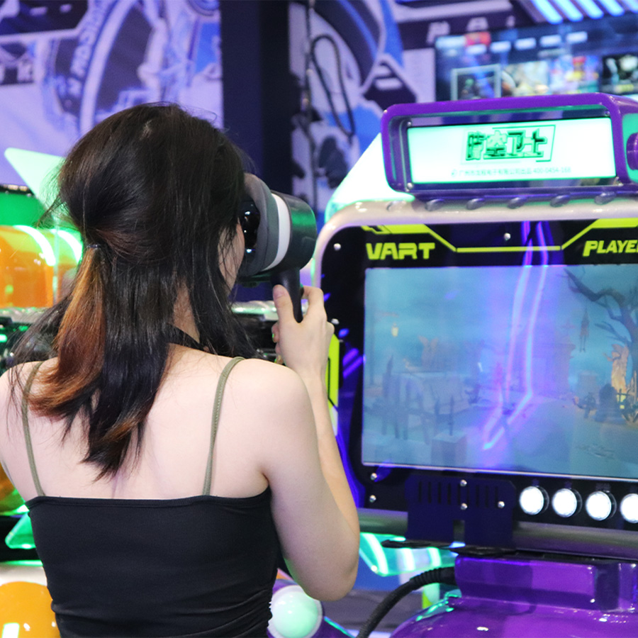 時(shí)空衛(wèi)士是一款創(chuàng)新型共享式VR自助游戲機(jī),結(jié)合了炫酷的未來(lái)科技外觀,便攜式佩戴,多種射擊游戲主題以及卡片獎(jiǎng)勵(lì)的功能,為玩家提供前所未有的沉浸式游戲體驗(yàn)。