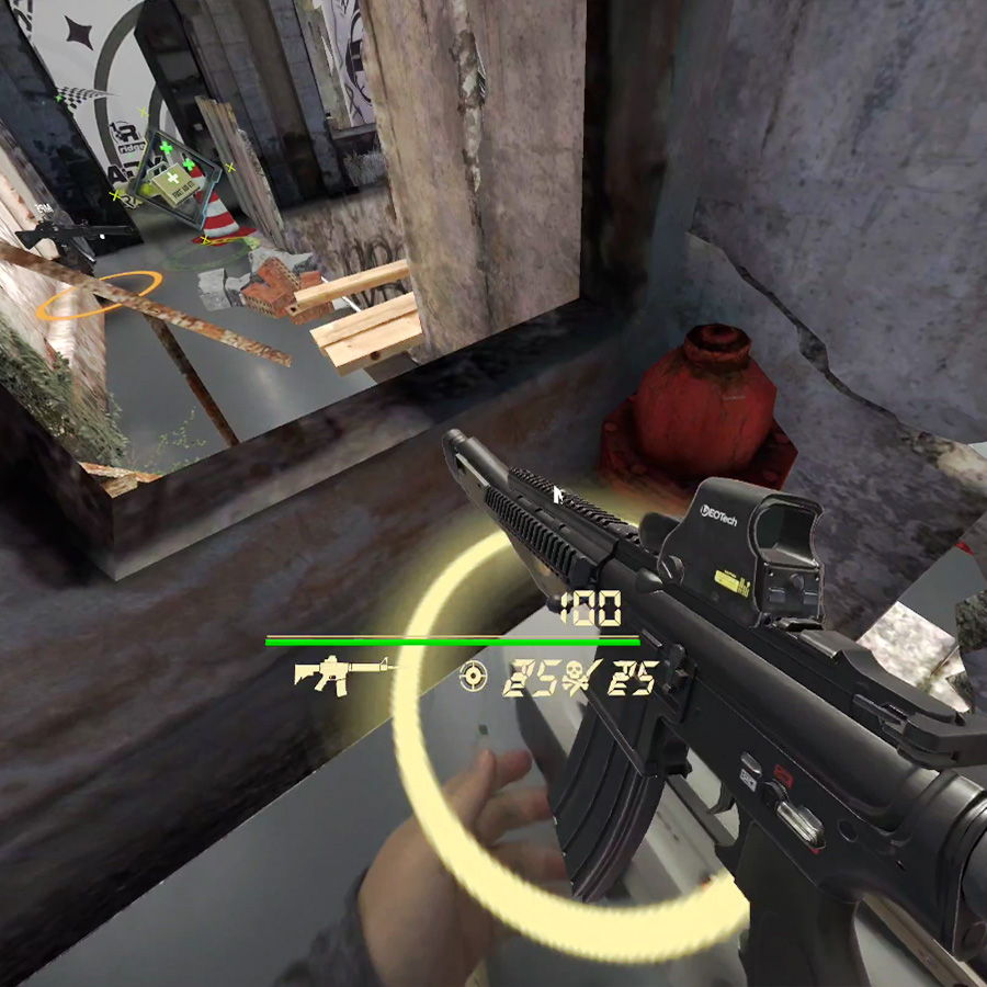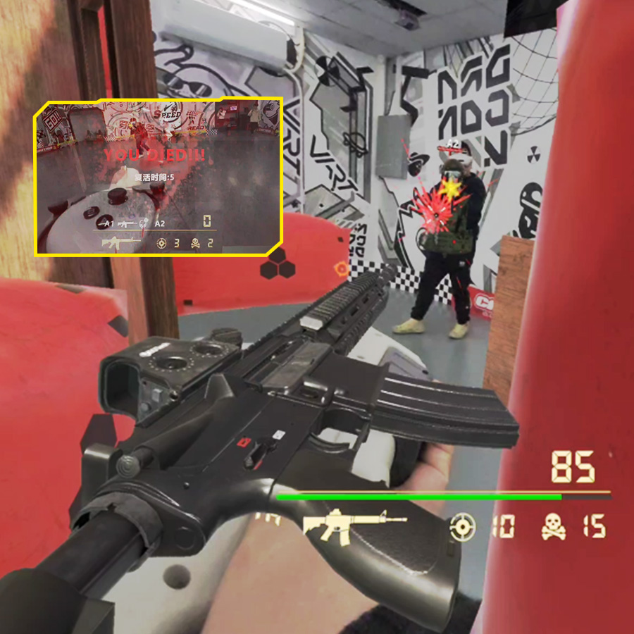 3、全感官沉浸的MR真人cs體驗(yàn),數(shù)把擬真槍支切換,多張競(jìng)技地圖,可互動(dòng)的地形。