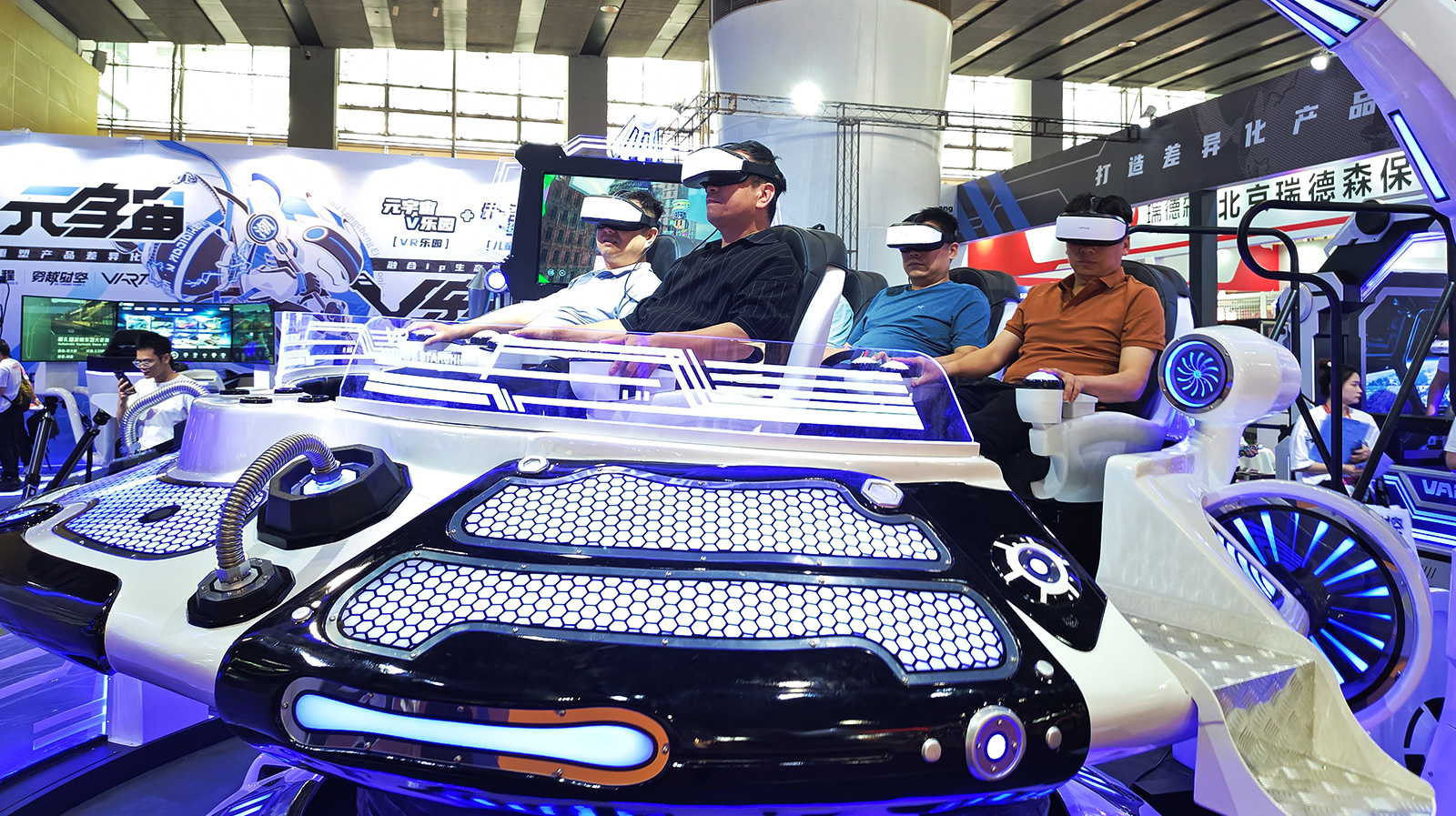 7.這是一款可5人同時體驗的VR娛樂設備